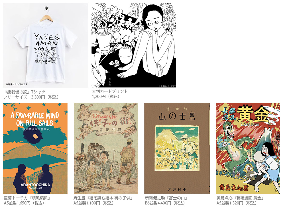 『痩我慢の説』(税込1,430円)、『電話・睡眠・音楽』(税込1,430円)、『アントロポセンの犬泥棒』(税込1,430円)、小画集『川勝徳重の一枚絵。』(税込1,430円)