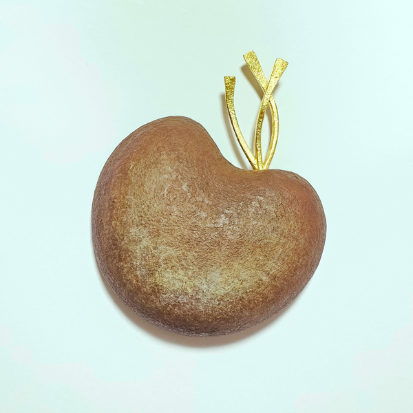 佐瀬梓は、金属を叩いて造形する「鍛金」と、焼付けの技法を用いています。一輪の花のように暮らしに彩りを添える《Ichirin》、「まだ何ものでもない、ただただ無垢なもののけの子」というテーマで制作した《もっけのこ》など、シンプルでありながらも日常に寄り添うあたたかみのある作品を手掛けています。