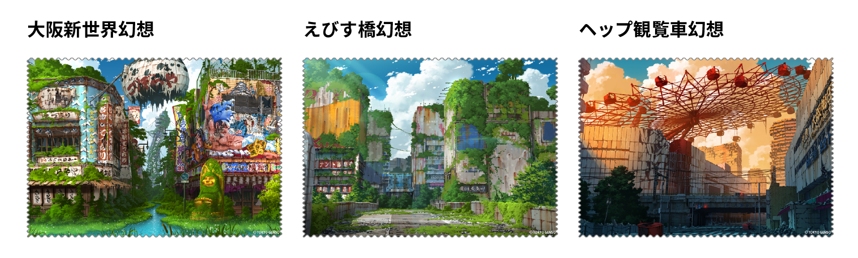 「大阪幻想作品集」に収録の、東京幻想氏が描いた京都・大阪の街が、飾りやすいミニサイズの88グラフになりました。