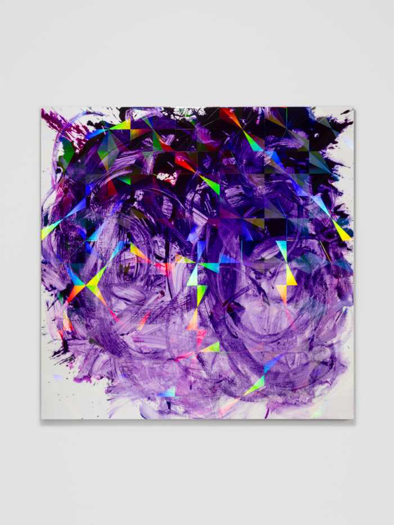 本展では、ホログラム塗料や金箔、プラチナ箔を用いた代表作に加え、光の角度や視線の動きによって虹色の輝きが変化する、特殊な表面構造をもつ新シリーズ《S》も発表されます。反射性のある素材や光に応答するマチエールは、鑑賞者と像とを動的な関係の中へと巻き込み、「視ること」の構造そのものを静かに揺さぶります。