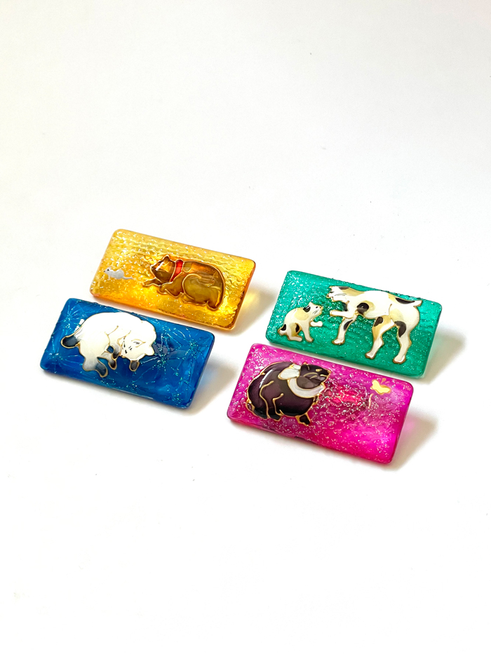 定番のガラス作品に加え、今回は浮世絵をモチーフにしたガラス絵や、お江戸猫缶の猫達のアクセサリーも登場します。