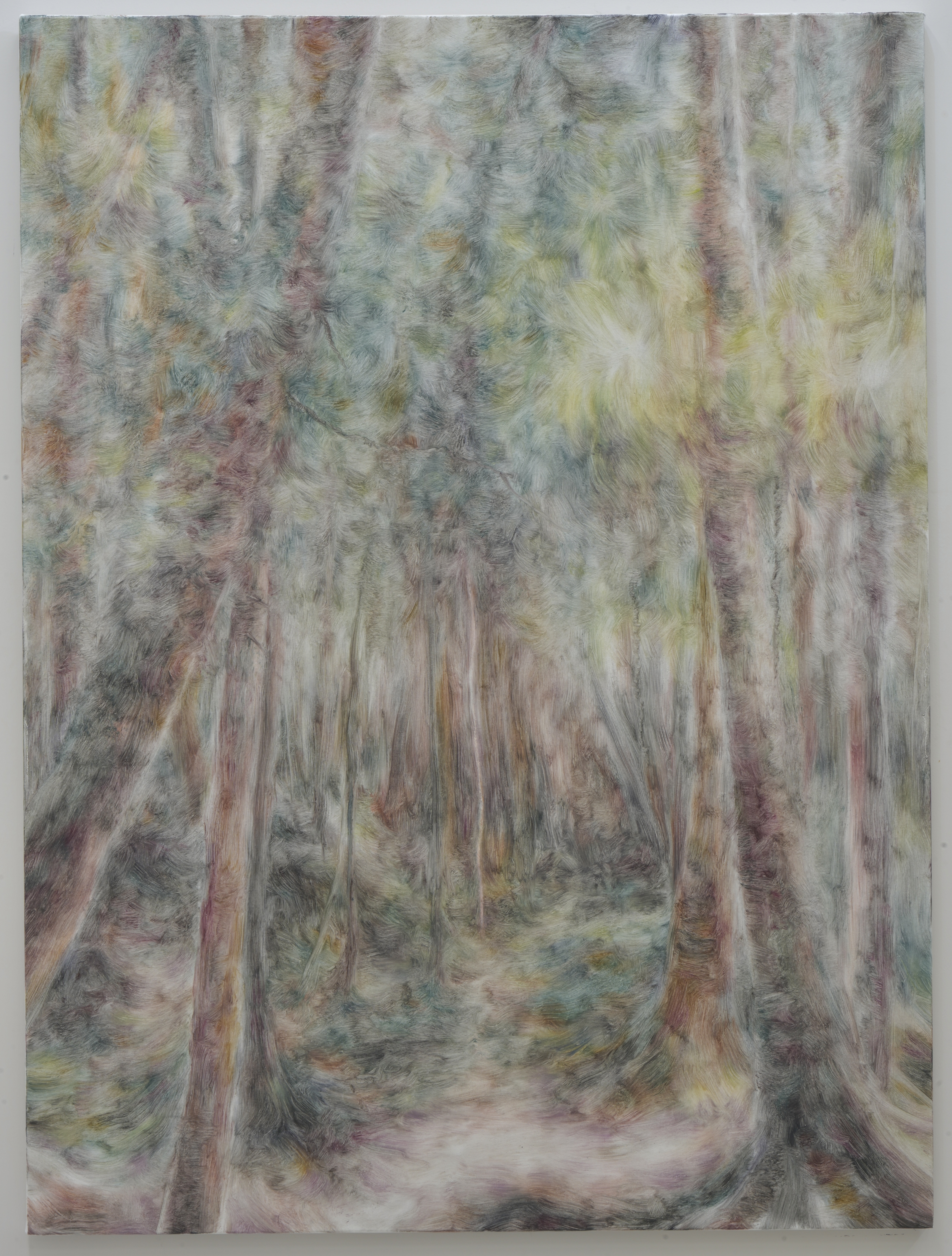 「肉眼では捉えられない何かが、モノの内側からふと立ち現れる瞬間がある。その不可視の領域から新たな概念が生まれるとき、私はそれを『虚』と呼んでいる。対象と対象のあいだに生じる隙間や、そこに潜む穴のような空間にも、同じ感覚を覚える。とりわけ、風景の中にありながら、そこに同化することなく佇む存在に強い関心を抱いてきた。私にとって描く行為は、その『虚』の感覚を鑑賞者に示唆するための試みであり、モチーフは不可視の存在を映し出す焦点でもある。」