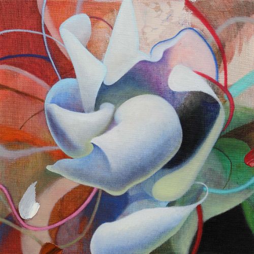 私が描く花や身体は、自然や個人の姿を起点にしながら、時間と記憶の堆積を可視化するための媒介です。筆を重ねるうちに、像は揺らぎ、ほどけはじめ、鮮やかな色や厚く塗られた筆致へと変容していきます。その画面は日々を描き残す空間として息づきはじめ、心の奥に残る微細な感覚や、過ぎ去った時間の余韻をも抱え込んでいきます。