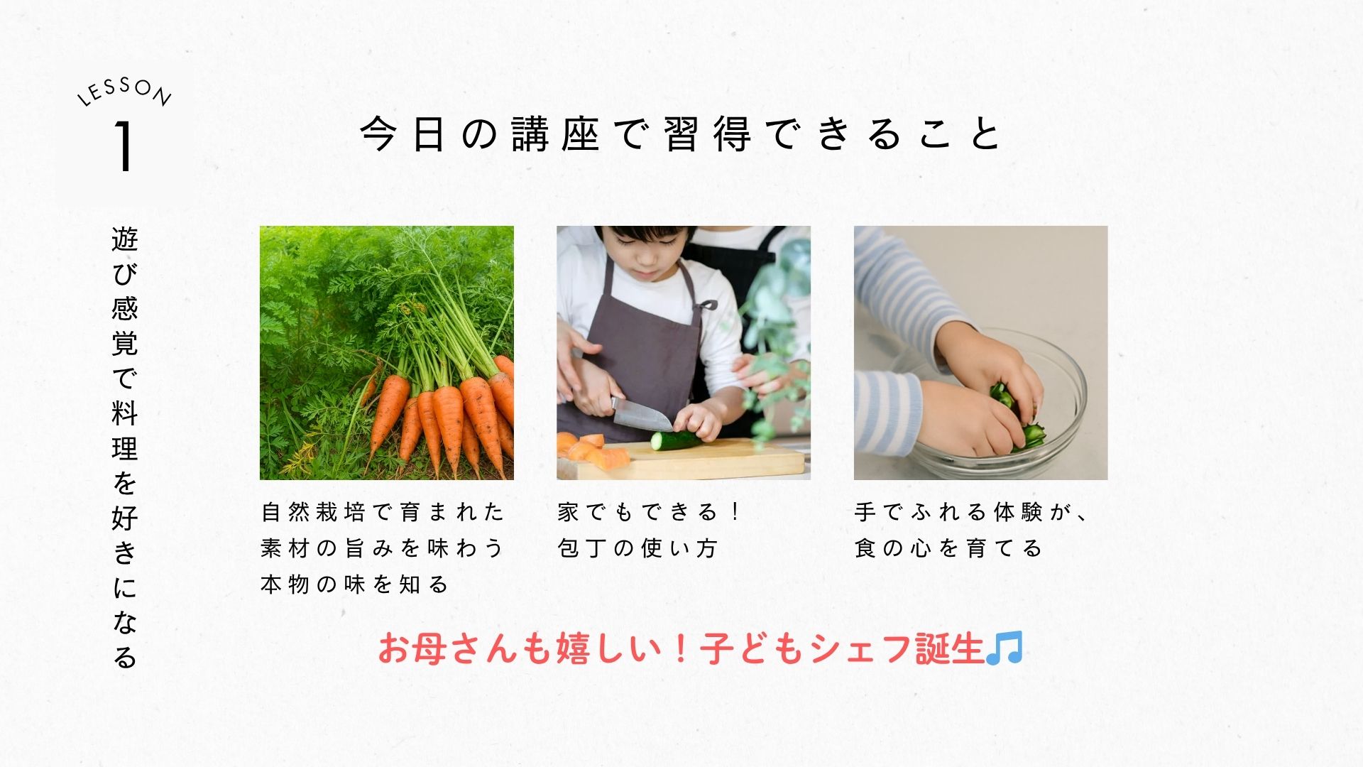 子どもたちが五感で料理を学ぶ食育ワークショップを企画。