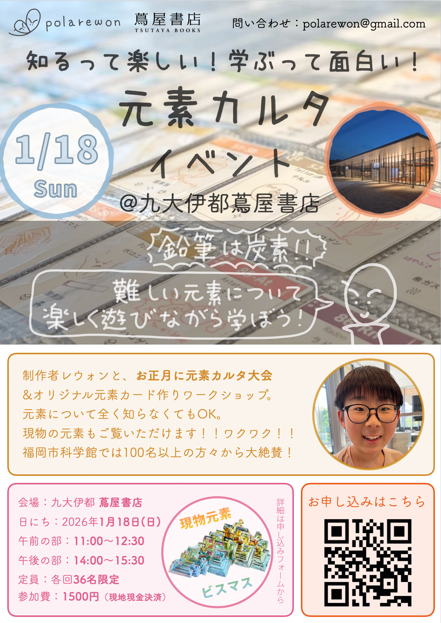 「九大伊都 蔦屋書店」にて、元素カルタ大会のイベントを開催します!