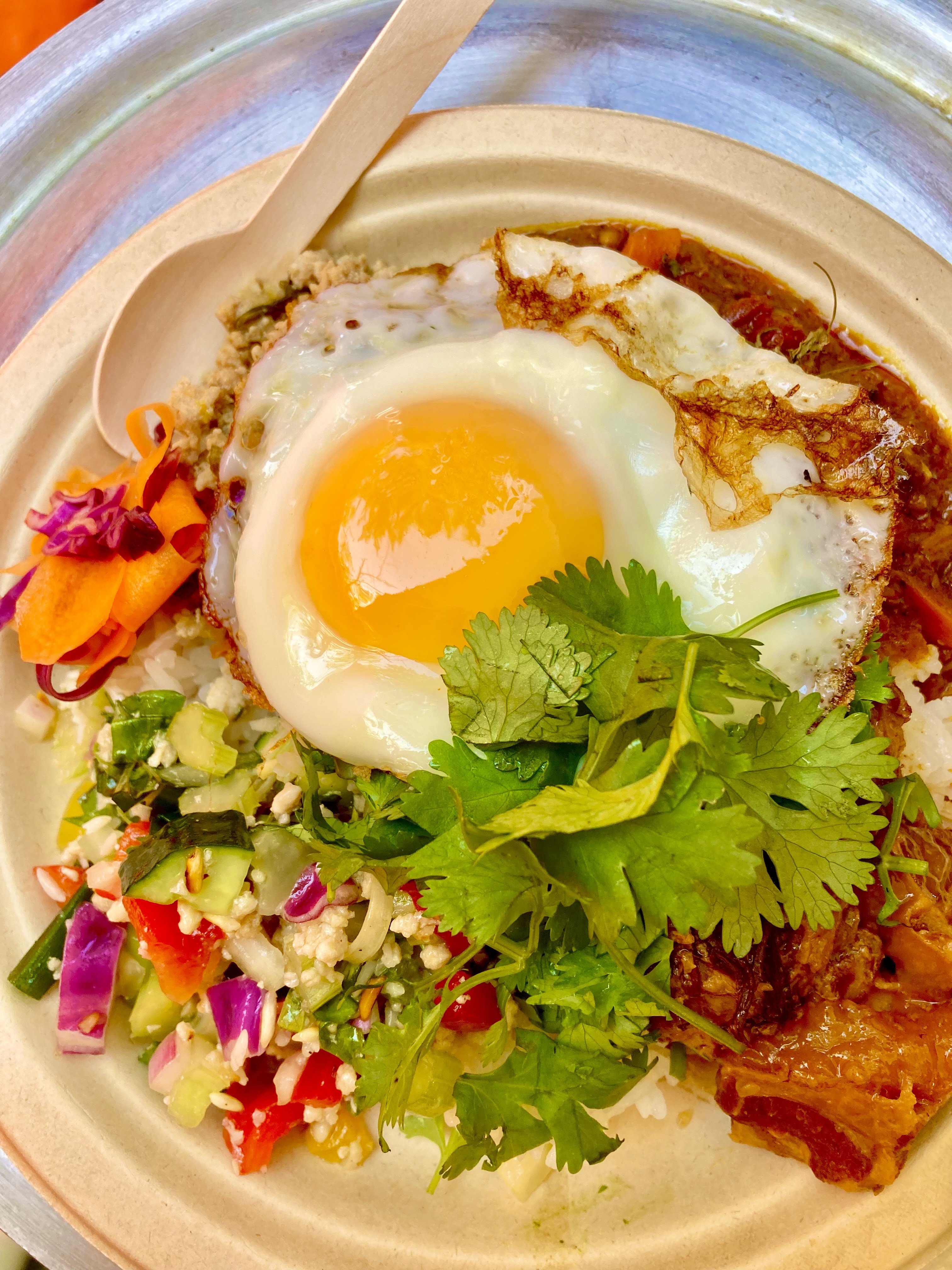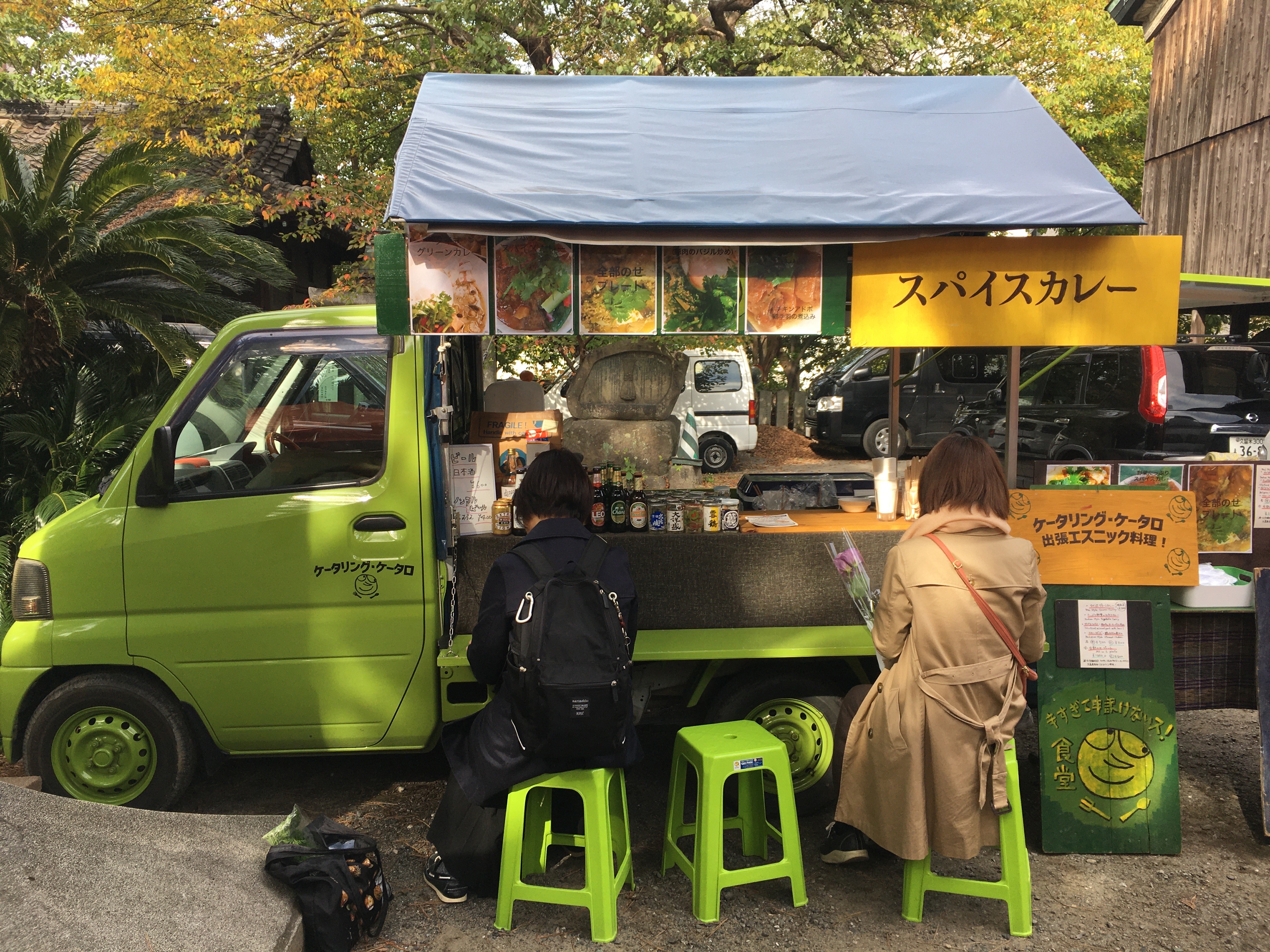無添加エスニック料理を提供するパクチー色の軽トラです。 グリーンカレーやガパオなど数種類のアジア料理をお好みの組合せ のプレートに出来ます。 子どもさんに人気の辛くないメニューもございます。お楽しみに!