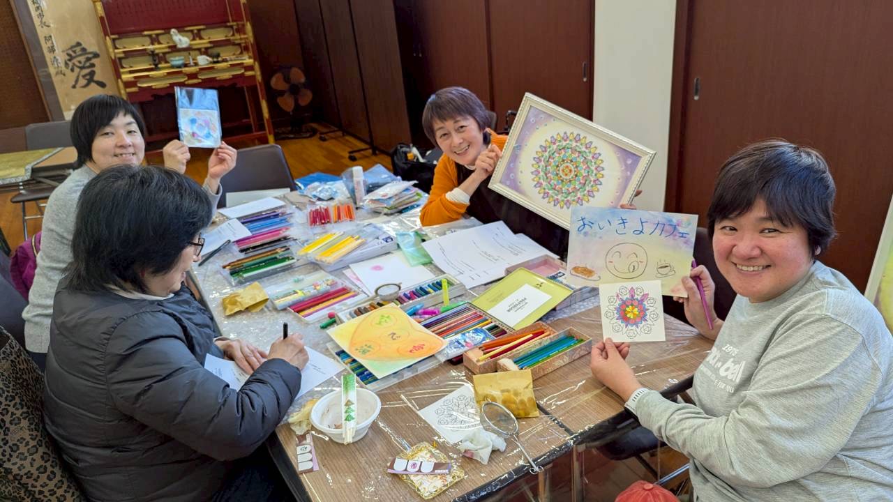 45分〜75分の間にぬり絵やにじみ絵を楽しんでいただきます。