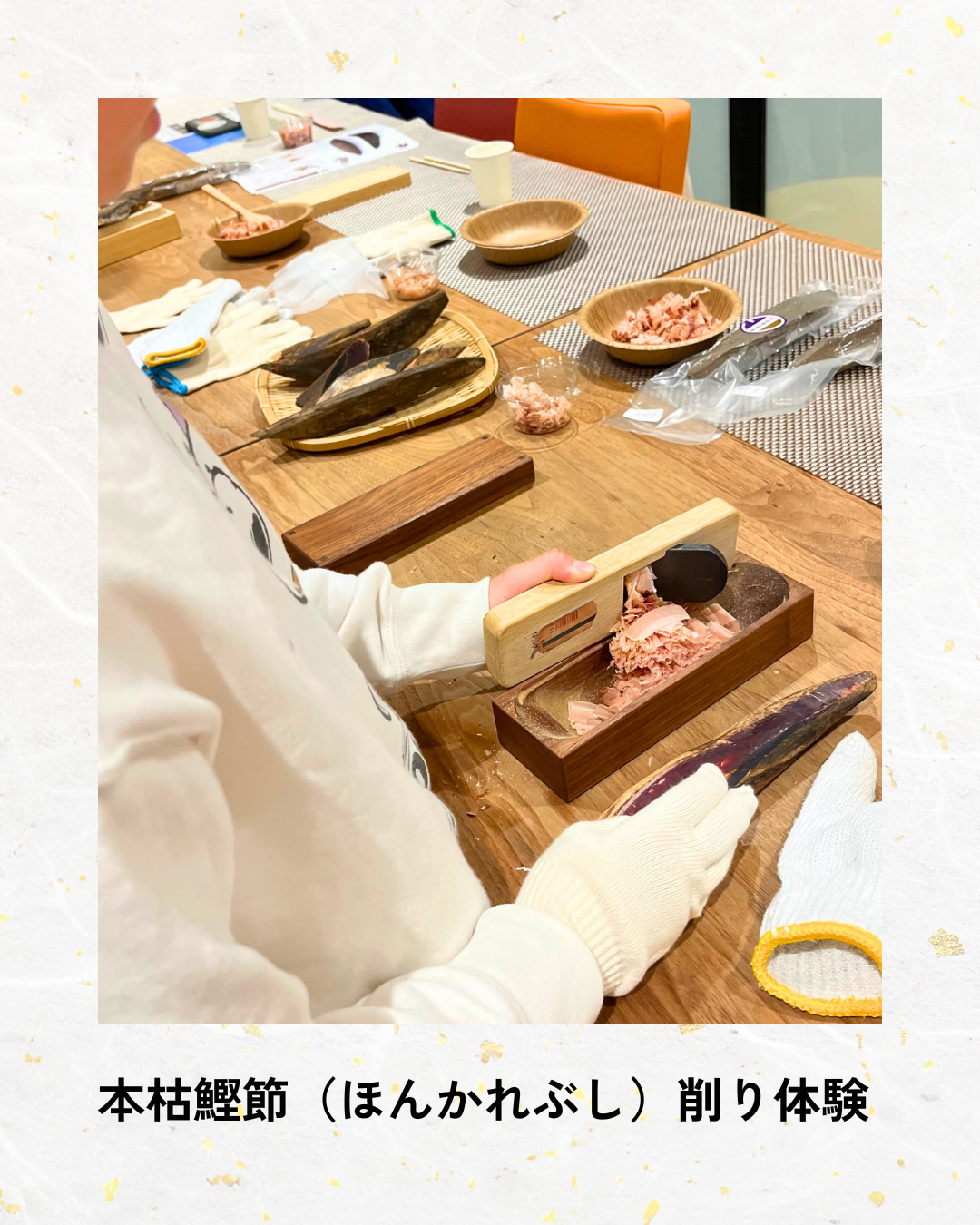 このワークショップでは、自分で削った「かつおぶし」で味噌汁をいただく体験ができます。