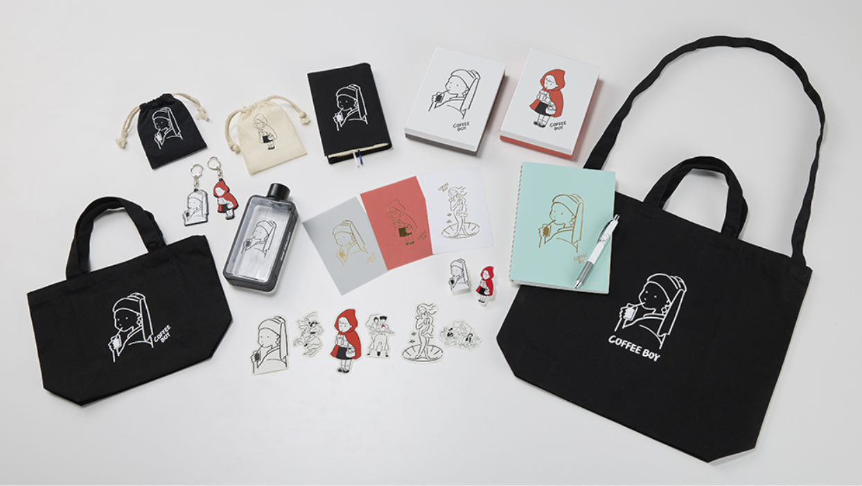 コーヒーをテーマにしたイラストが人気のイラストレーター COFFEE BOYさんのオリジナル商品を、TSUTAYA限定で発売します。シンプルでユーモアあふれるドローイングで、グッズ、書籍、ロゴなどを制作するCOFFEE BOYさんのイラストは、見る人をほっこりさせてくれます。ヨハネス・フェルメールの「真珠の耳飾りの少女」をモチーフとした「PEARL GIRL」を中心に、シンプルなデザインを活かしたグッズを数量限定で作りました。