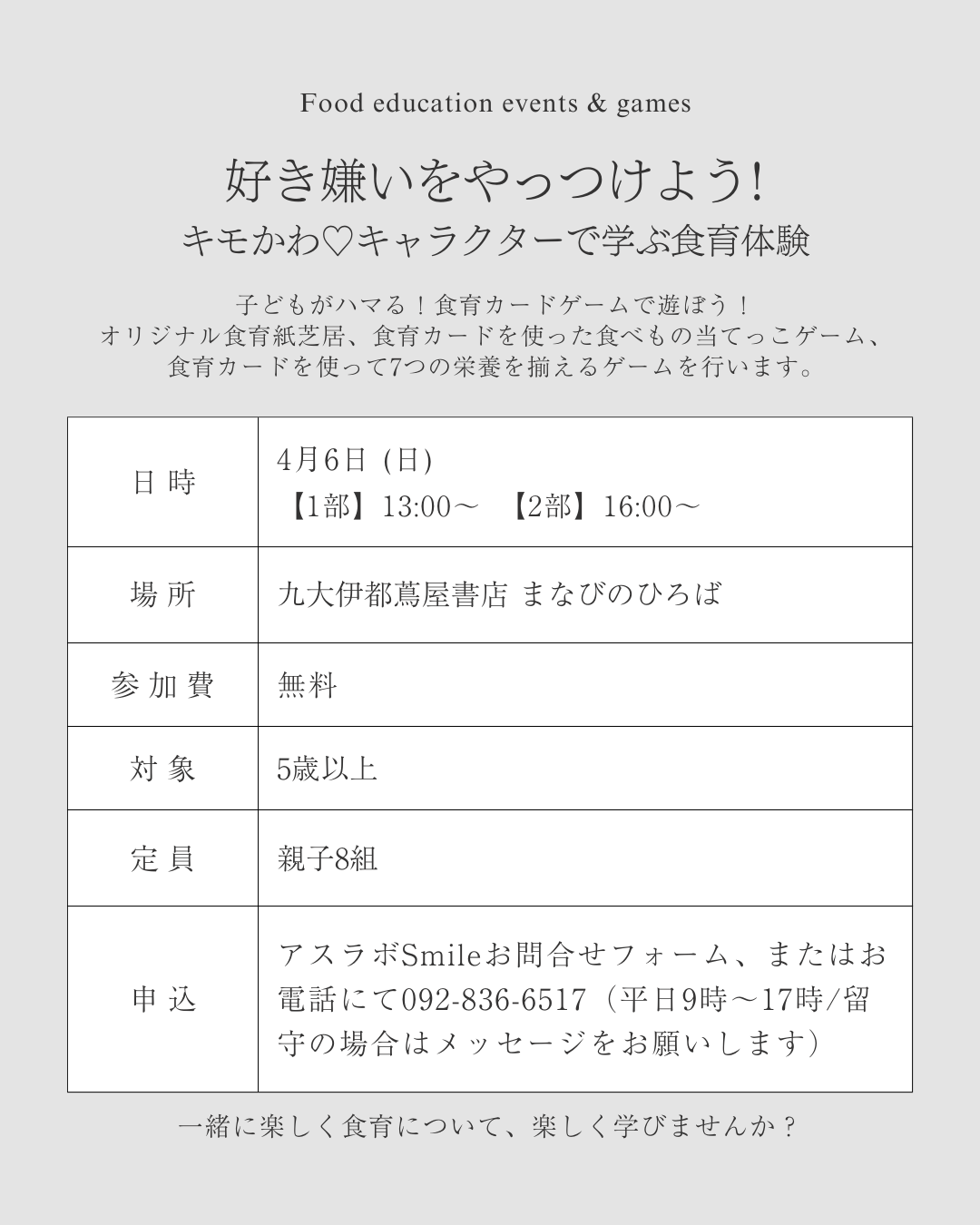 【EVENT】好き嫌いをやっつけよう!キモかわ♡キャラクターで学ぶ食育体験