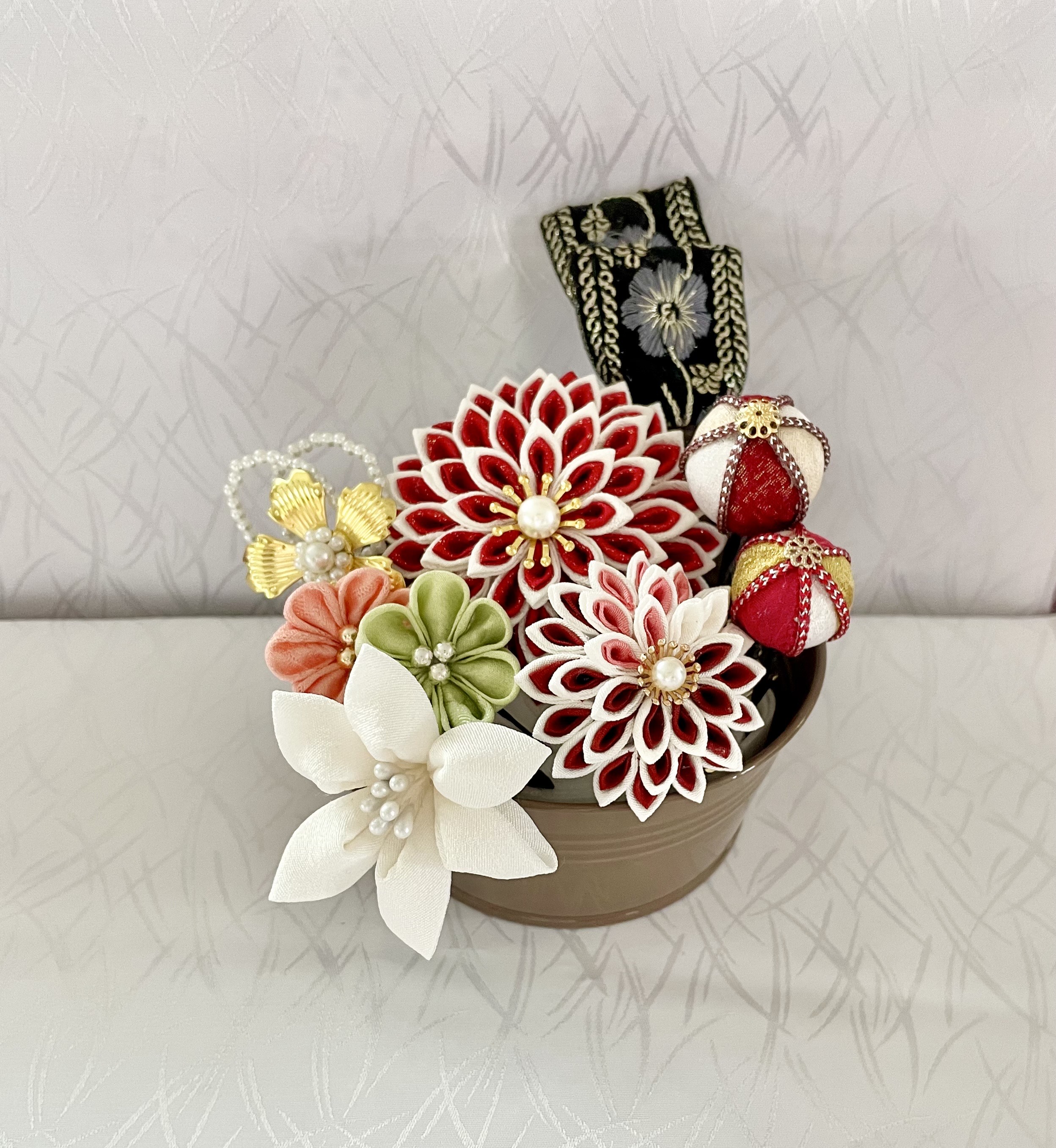 一から細かく小さなカラフルなビーズを使用し色々な種類の花を作製しております。