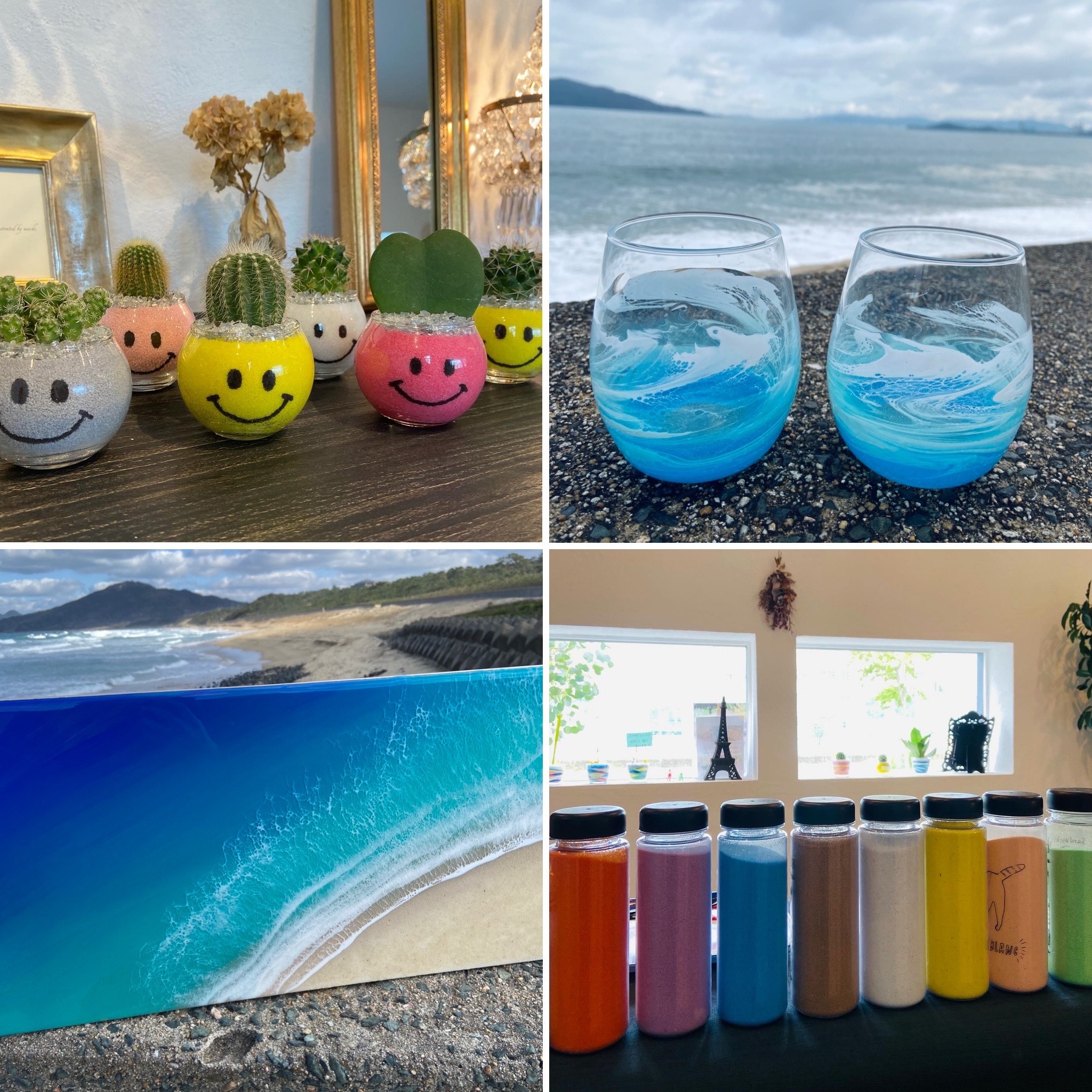 シンプルな装いにぱっと映えるアクセサリー(イヤリング・ピアス・リング・ネックレスなど)をご準備していますのでお気に入りのアイテムを見つけてみてください。特にレジンアクセサリーはすべての模様を丁寧にデザインしていますので、是非手に取って光に当ててご覧ください。春にぴったりの新作も出す予定ですのでお楽しみに。ドライフラワー等を使ったボードフラワーも販売します。新生活のインテリアとして、母の日のプレゼントとしてぜひご覧になってください。