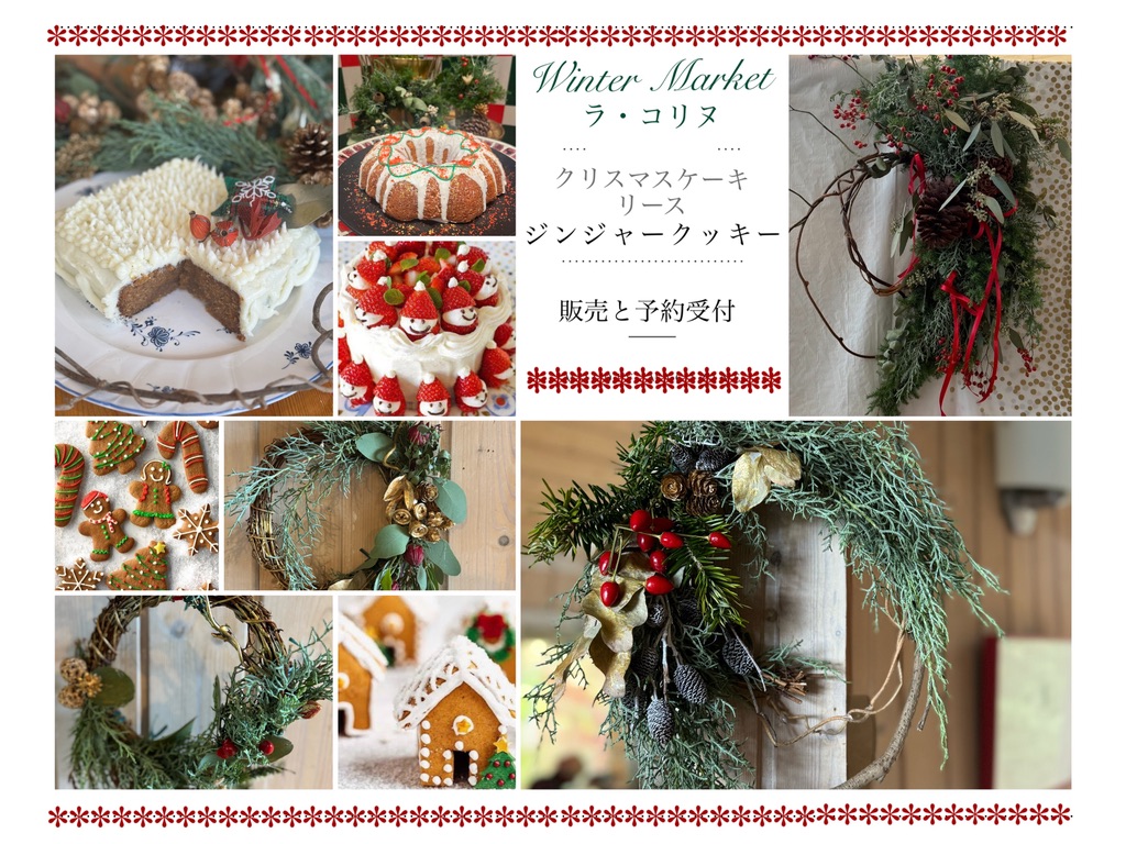 特製ジンジャーブレッドとクッキーの販売、クリスマスケーキの予約受付(※クリスマスケーキは当日販売はございません)ジンジャーブレッドはクリスマスシーズンに家族の無病息災を願って食べられる伝統的な焼き菓子です♪クッキーにデコレーションできちゃう体験ブースもございます。