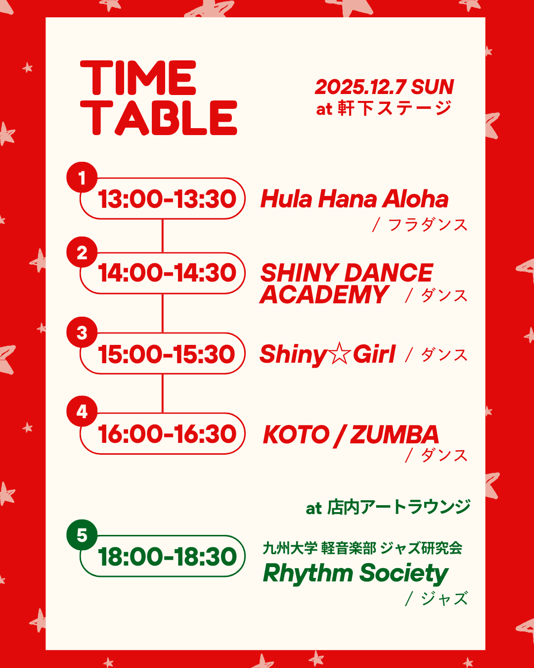 - 備考 荒天中止(屋外のみ)、少雨決行