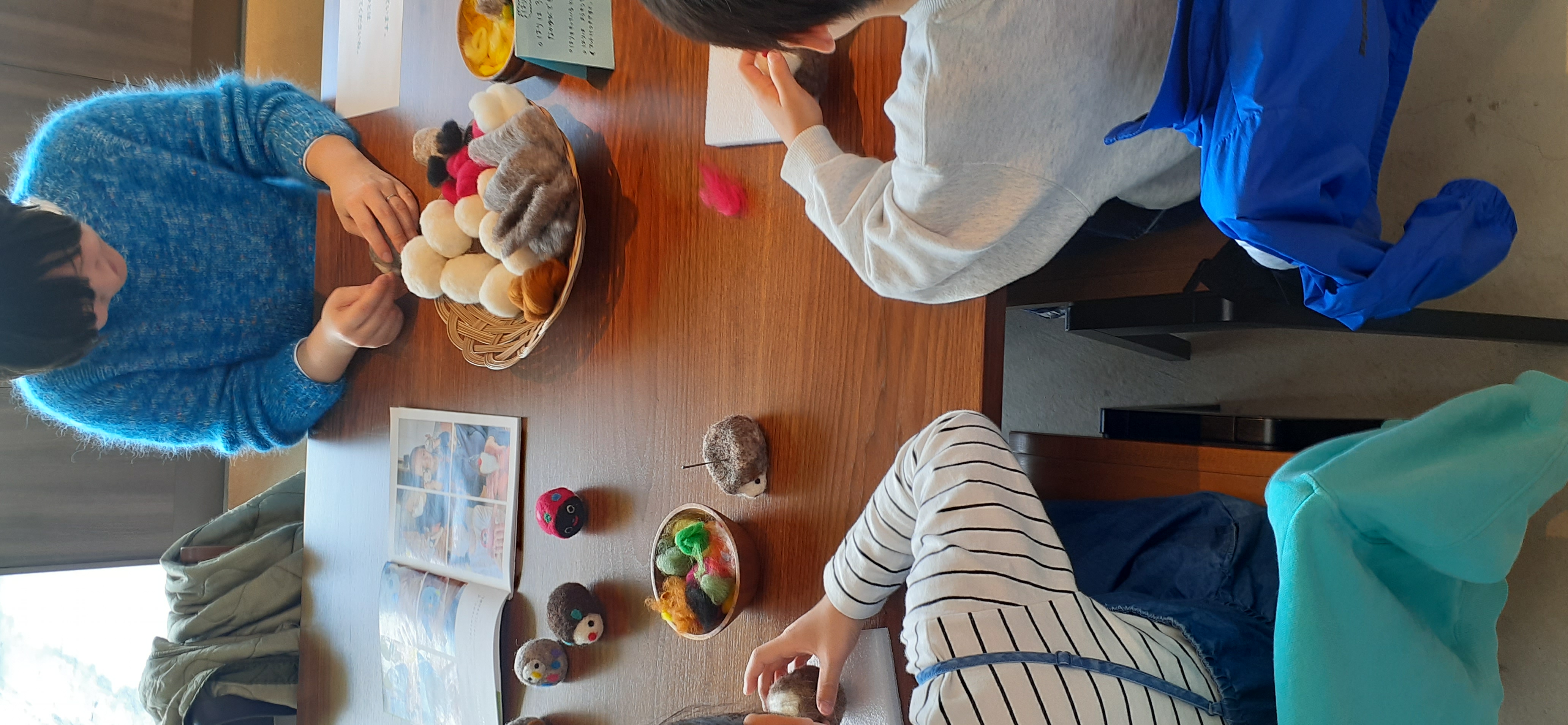 羊毛を洗ったり、ニードルで小物を作ったり。