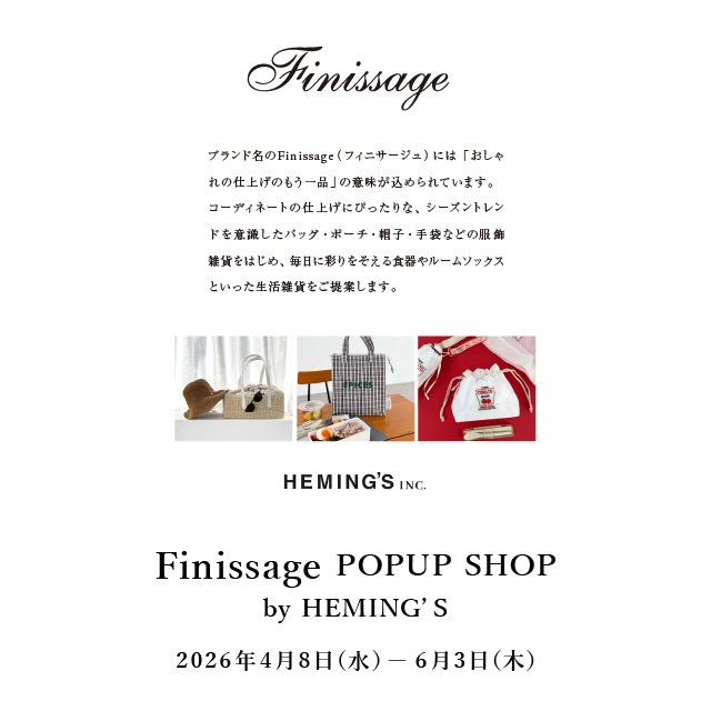 イベント2026.04.08(水) - 06.03(水)【POPUP SHOP】『Finissage』by HEMING'S -
