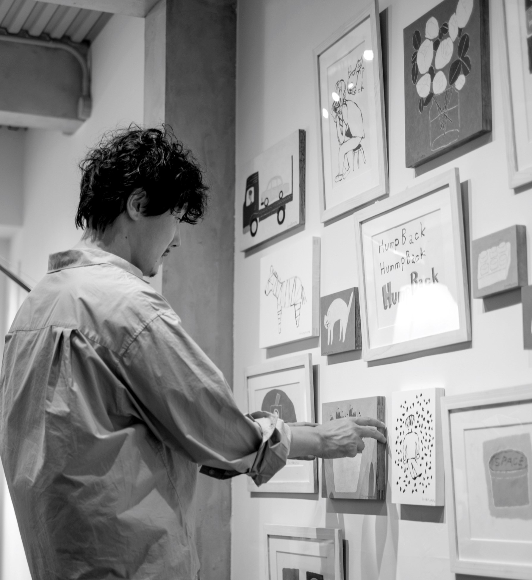 あたたかみのあるクレヨン画で人気の、イラストレーターで絵本作家の北村人さん。現在、北村人さんの絵本『まる!』『だーれ?』(童心社)『わたりましょ』(こぐま社)の刊行を記念して原画展を開催しております。(8月1日―8月31日まで)