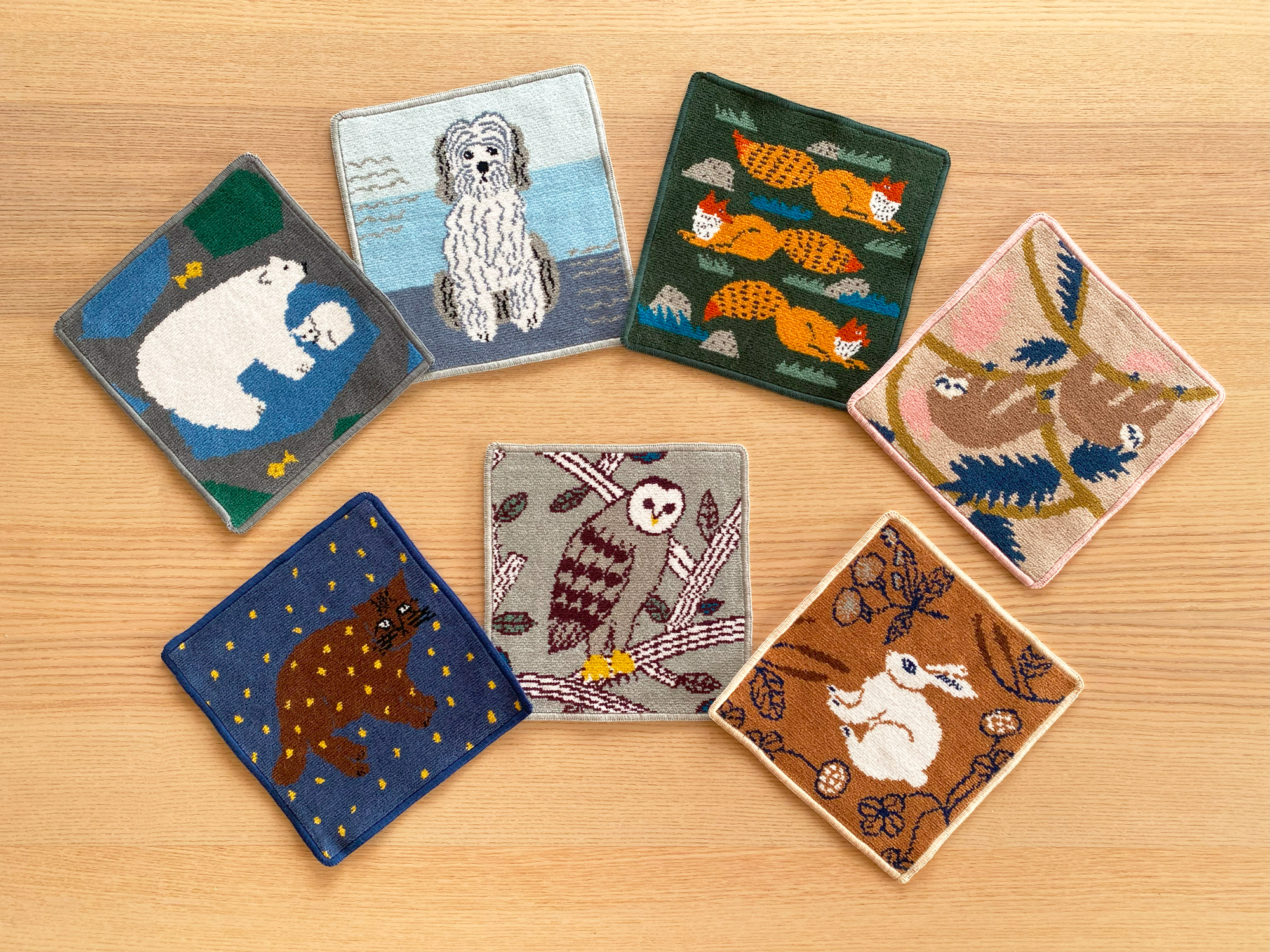 ソックスやハンカチに編みや織り柄で再現されているのは、絶滅危惧種や希少種の動物たち。