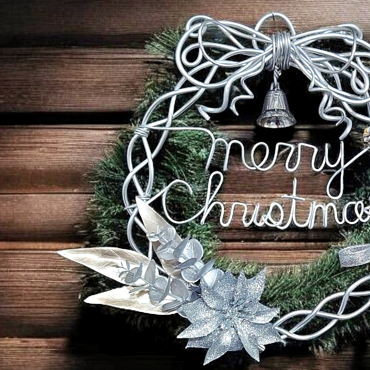 艶やかな “パールシルバー” のワイヤーを使って、シックでおしゃれなクリスマスリースを作ります。