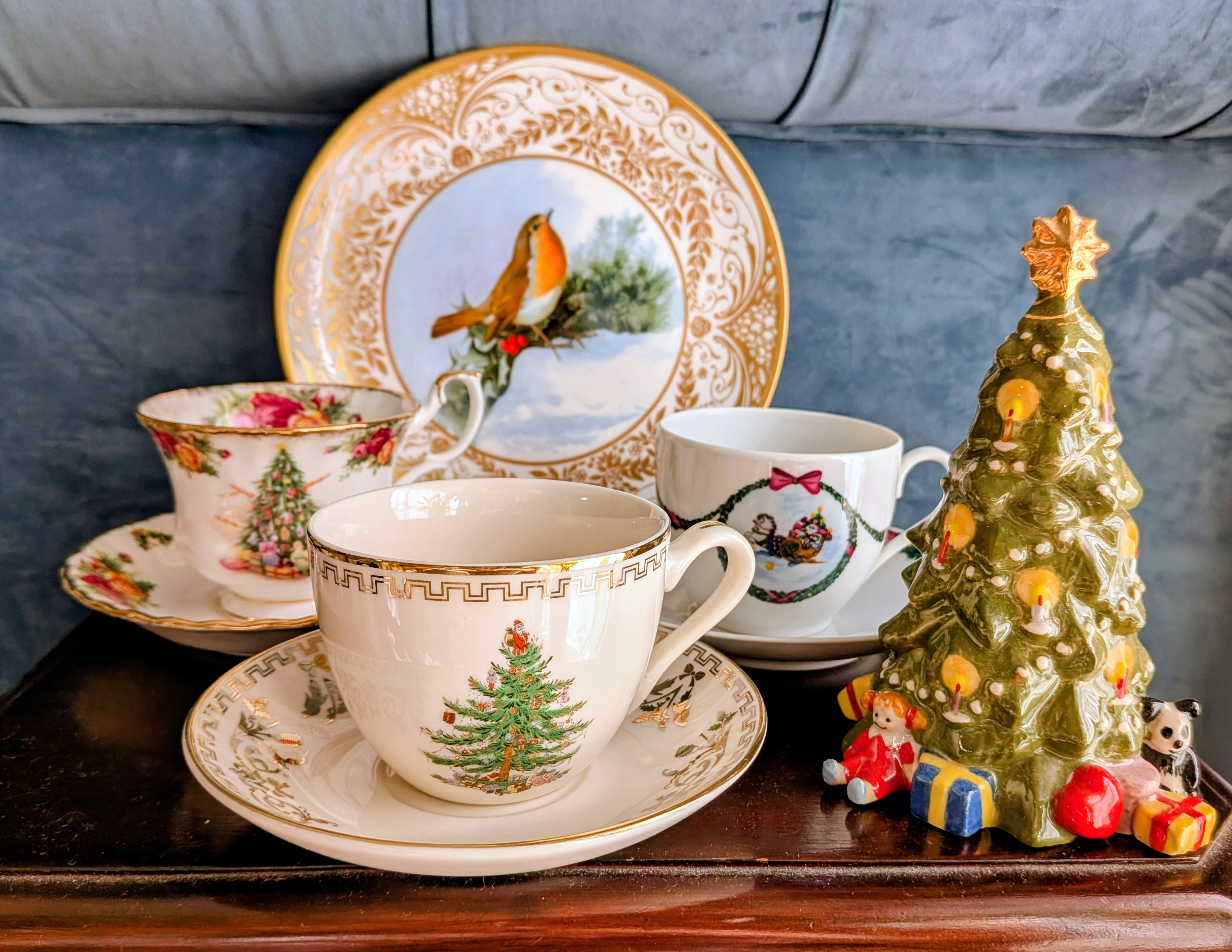 華やぐ季節のテーブルに輝きを添えるアンティークのシルバーや陶磁器、ビンテージアクセサリーやスカーフ、ツリーオーナメント等のクリスマスグッズを集めてみました。