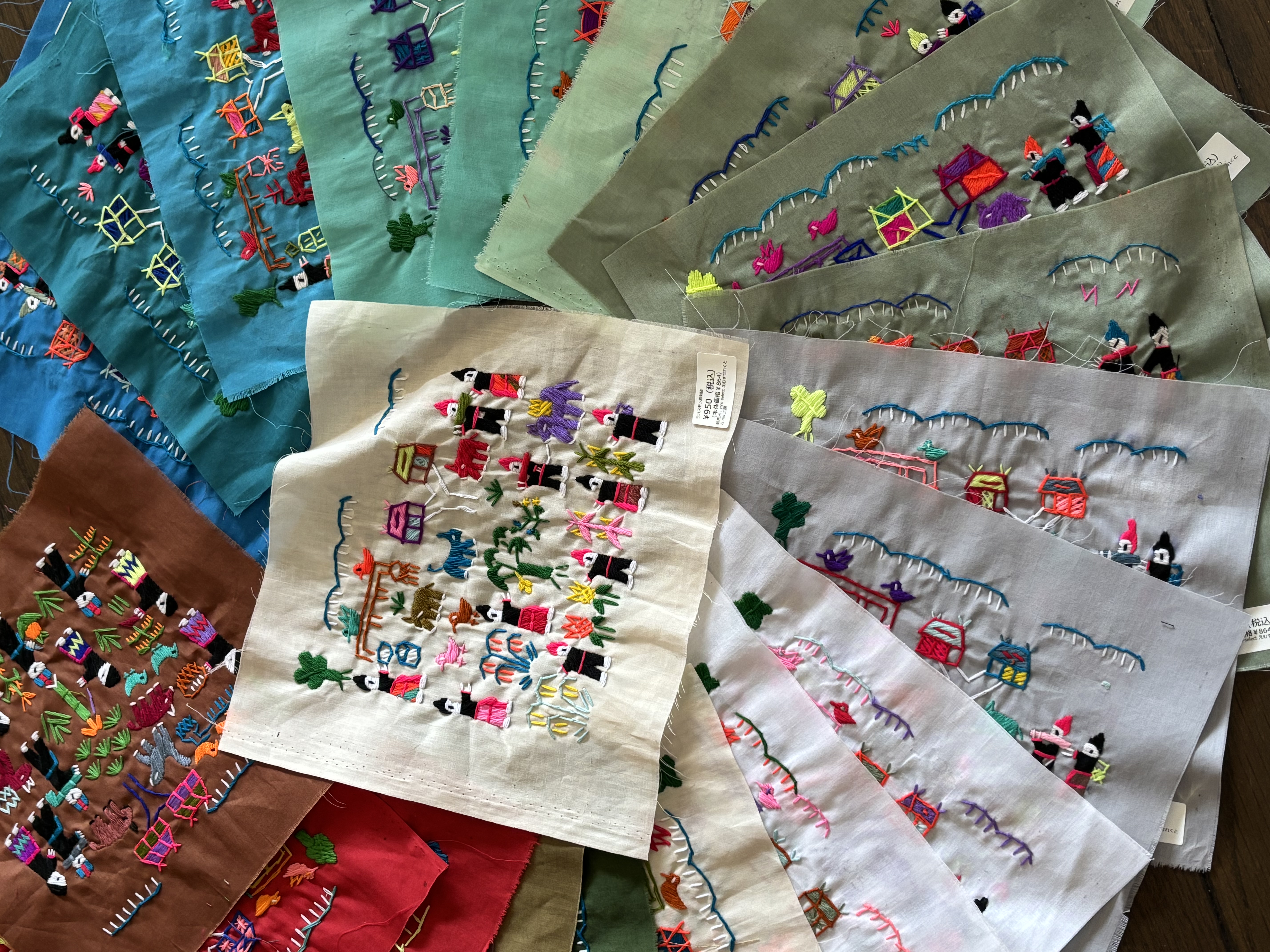 ヴィンテージのハンカチやテーブルクロスをリメイクしたお洋服や、