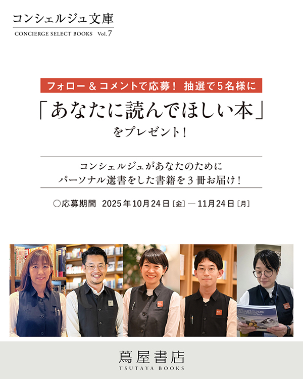 コンシェルジュ文庫の開催を記念し、抽選で5名様に蔦屋書店のコンシェルジュがあなたのためだけに選書する「パーソナル選書」が当たるSNSキャンペーンを実施します。応募はInstagramで蔦屋書店の公式アカウントをフォローして、キャンペーン投稿にコメントするだけ!皆様ぜひ、ご応募ください。