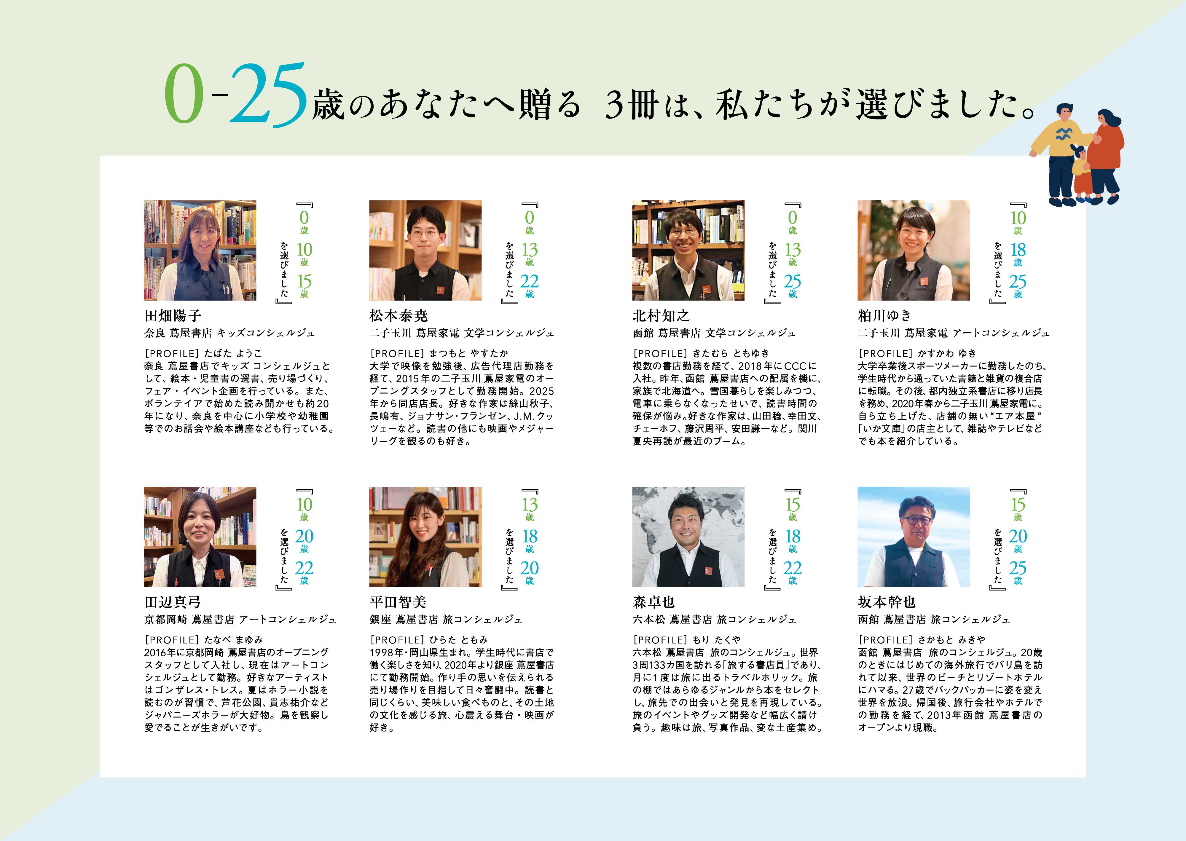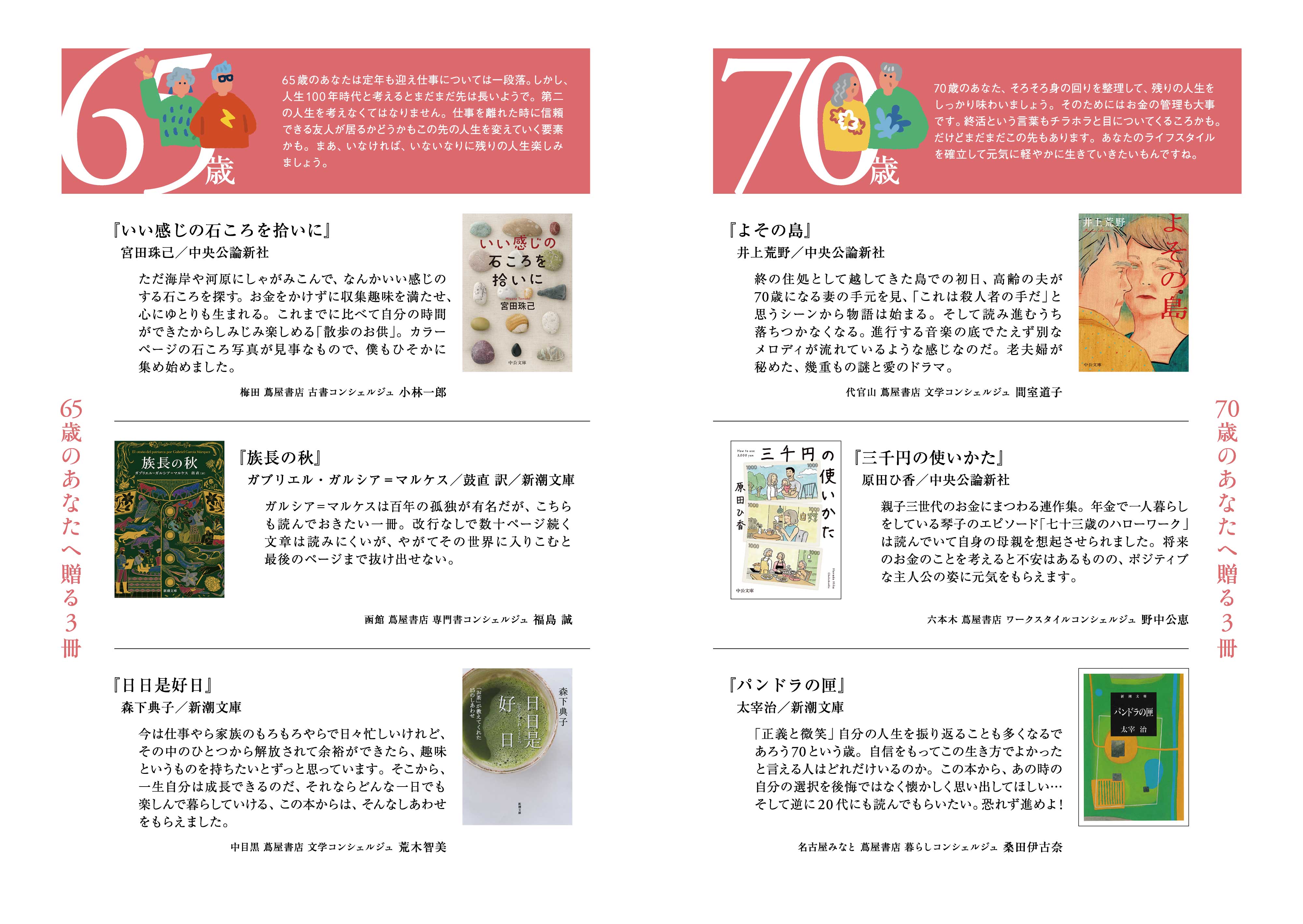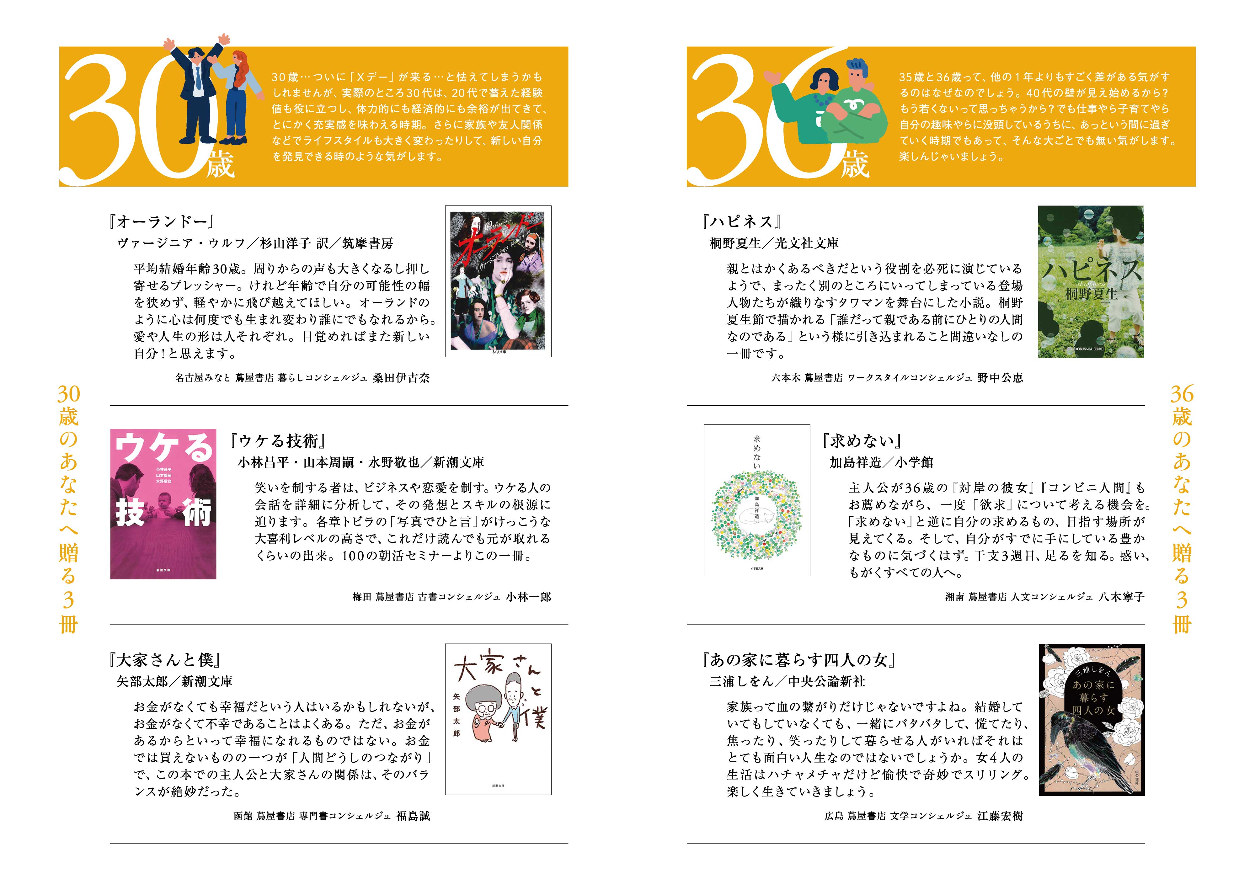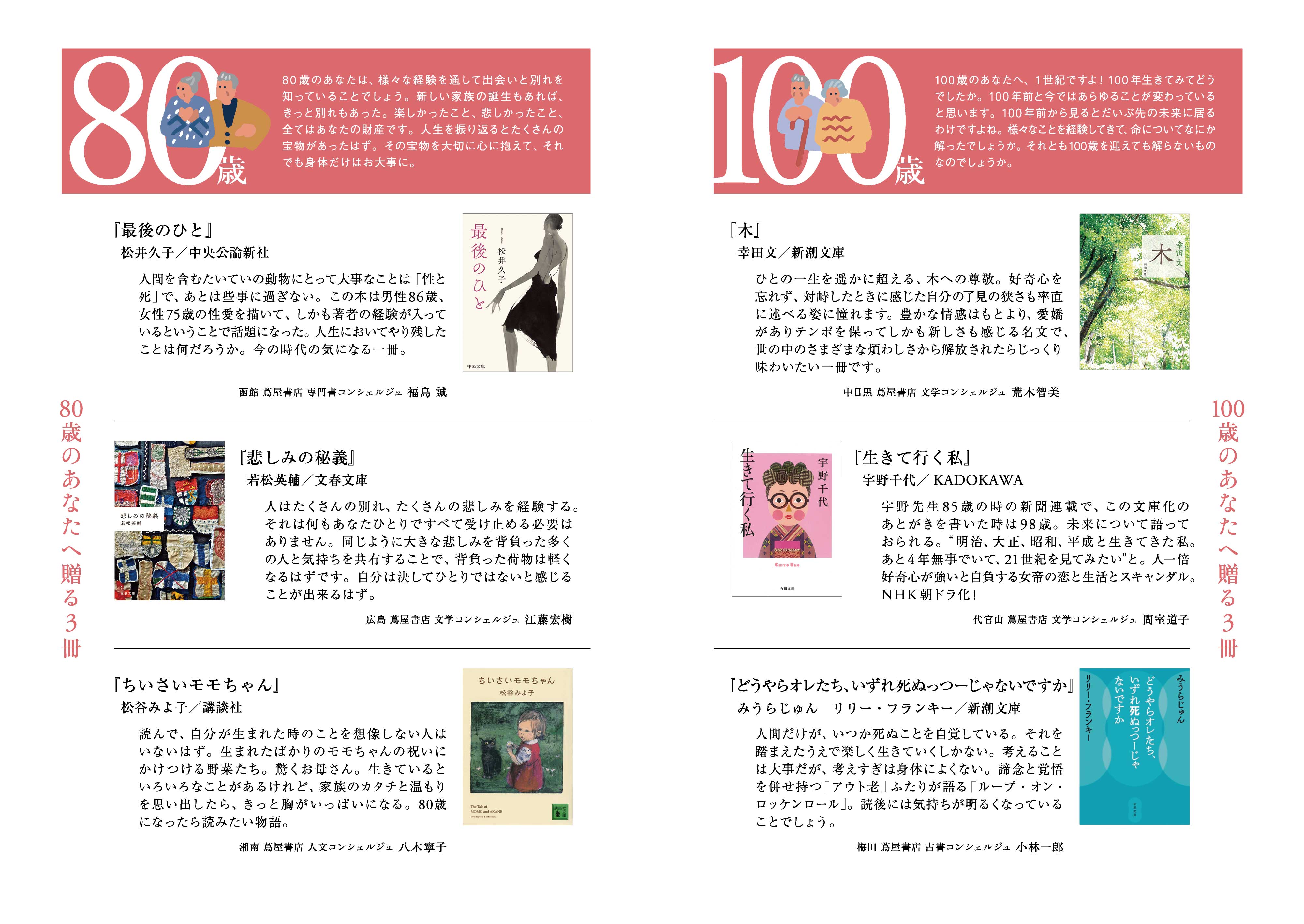 今の自分の年齢に近い本を選んでもいいし、過去や未来の自分を想像して手に取ってみるのも面白いかもしれません。