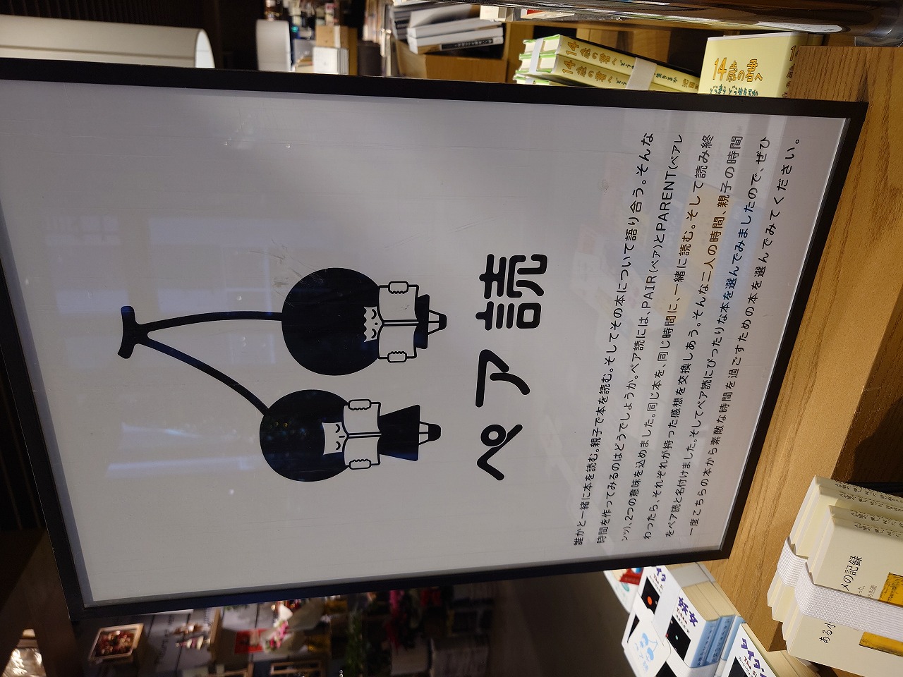 「ペア読」は、新しい読書体験をもたらす親子読書、親と子どもが「同じ時間に」「同じ部屋で」「同じ本を読む」という体験です。どうすれば、子どもたちに本を読ませることが出来るのか? どうしたら、本好きな子どもに育つのか? そのひとつの答えとして、私はこのフェアを考えました。