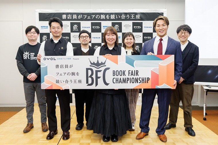 全国の書店員が「日本一面白い書店フェア」を競い合う前代未聞の出版業界横断プロジェクト「第2回 OVOL 日本紙パルプ商事 presents Book Fair Championship(以下、BFC)」にて、全国82件のフェアエントリーの中から、広島 蔦屋書店 江藤宏樹、藤原さゆりによる「ペア読」が、第2回チャンピオンに決定しました。また、梅田 蔦屋書店 永山裕美(企画)、橋本枝実(制作)による「本でめぐる人生ルーレット」が、2位に選出されました。