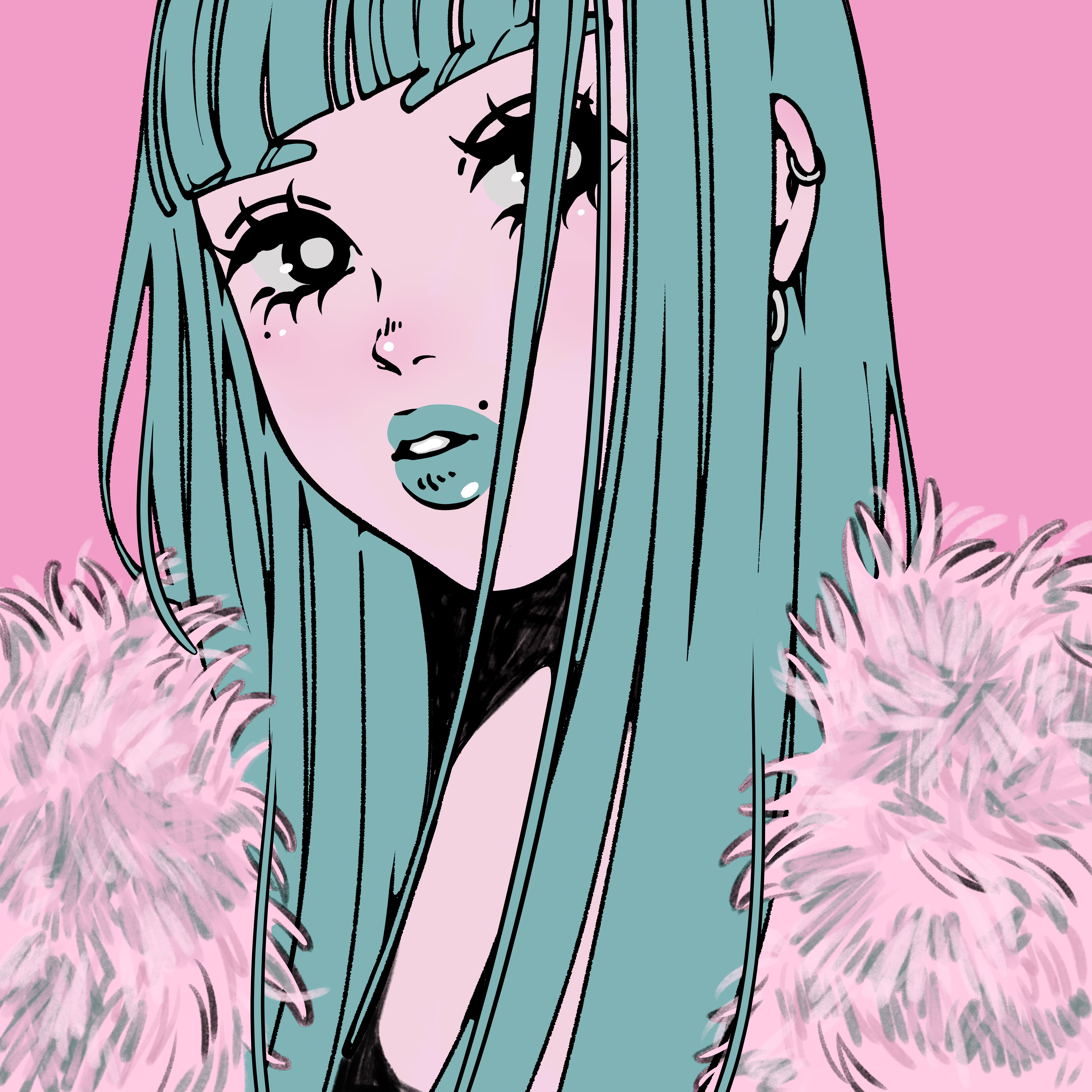 1996 年生まれ。福岡県在住。どこか毒気を感じる大胆なタッチとポップなパステルカラーが特徴的。