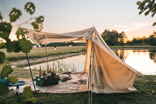施設内と屋外にちょっとしたキャンプ気分を味わえる Nordisk のテントが設置されます。