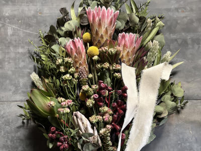 大磯花のアトリエ。季節のお花と枝物、花苗等。ブーケやリースもご用意します。ワークショップもお楽しみに。