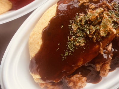 できたてオムライスをその場でお作りします。当店自慢のデミグラスソースのオムライスぜひお試しください。(キッチンカー)