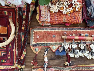 各国の民族衣装装身具、古道具、雑貨、そこから再生した服、バッグ、アクセサリーを販売します。