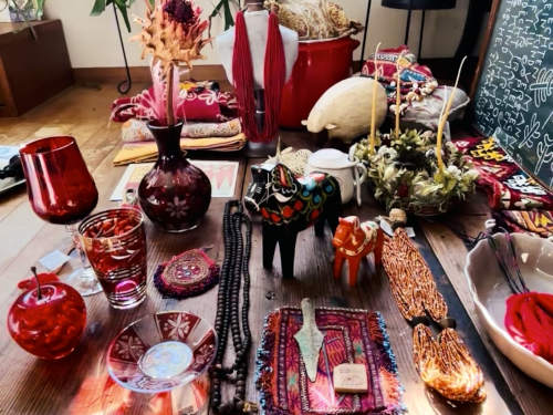 様々な国の民族衣装や装身具など伝統的手仕事の古道具、古布、食器を販売します。また、心惹かれたヴィンテージパーツから作成した服、バッグ、アクセサリーなどもご紹介します。