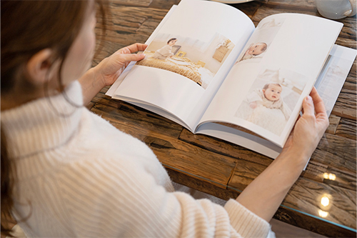 七五三におすすめの「アルバム-スフレ-プラン」は、箱・表紙一面に大きくお写真をレイアウトできる、オリジナルアルバム付きフォトプラン。お子様の笑顔をいつでもそばに飾りたい方に。