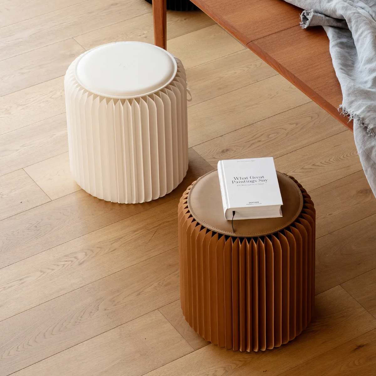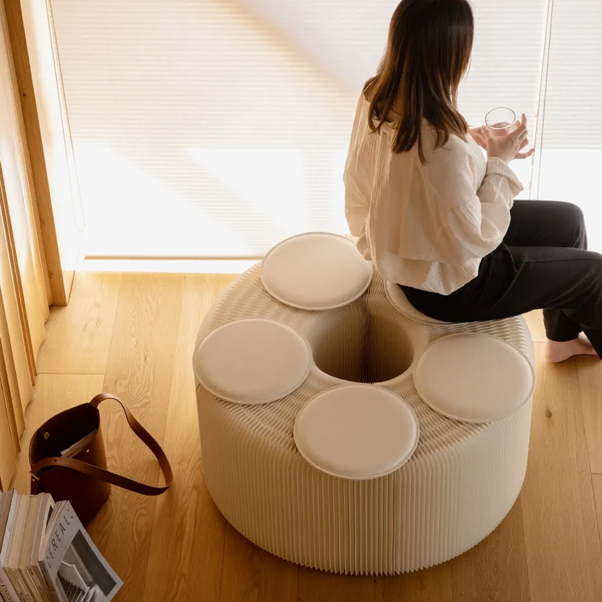 ※その他、Kraft paperシリーズ家具(折りたたみ クラフト紙ラウンドスツール、アコーディオン型 クラフト紙ロングスツール、ドラム型サイドテーブル)を展示。
