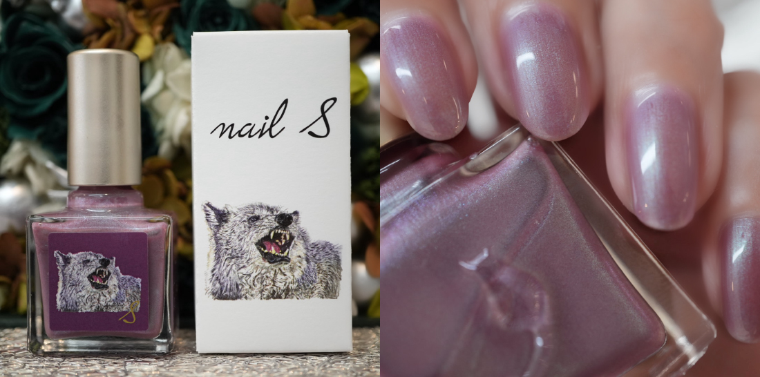 赤紫をベースに、グリーンラメパールがハイライトのように輝きます。張り巡らされた謎の中から、結末への手がかりに光を当てる様子をイメージしたカラーです。