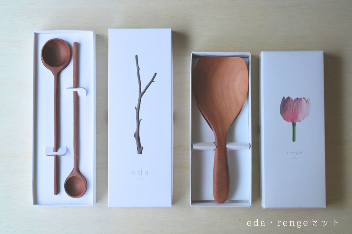ki dukiの一番人気「eda(木の計量スプーン)」と新発売「renge(木のスプーンレードル)」をセットにしました。